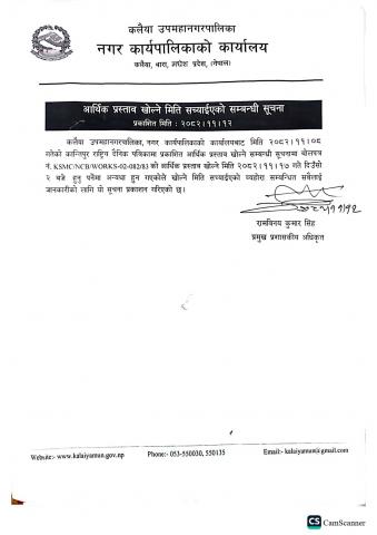 आर्थिक प्रस्ताव खोल्ने मिति सच्याईएको सम्बन्धी सूचना मिति : २०८२।११।१२