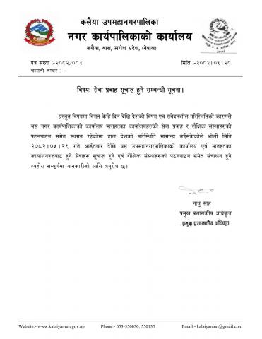 सेवा प्रवाह सूचारु हुने सम्बन्धी सूचना-मितिः२०८२।०५।२८