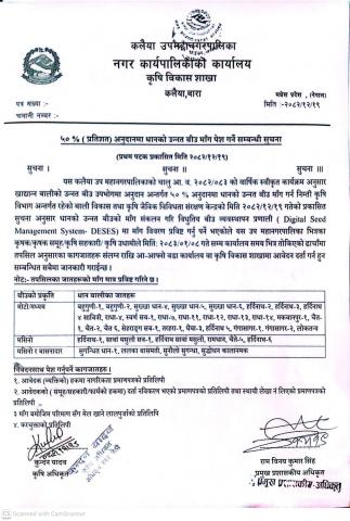 » ५०%(प्रतिशत) अनुदानमा धानको उन्नत बीउ माँग पेश गर्ने सम्बन्धी सूचना-मितिः२०८२।१२।१९