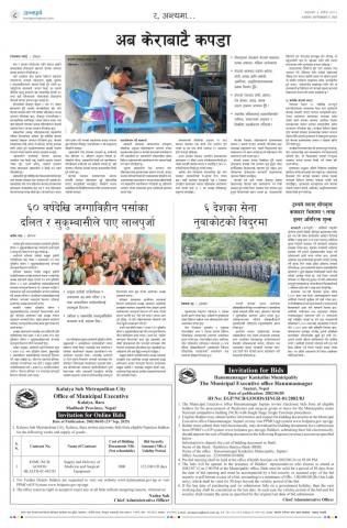 उपमहानगर क्षेत्र सरसफाई सम्बन्धि प्रस्ताव अह्वान (प्र्थम पटक प्रकाशित १५ दिने सूचना मितिः २०७५।०५।०५ )