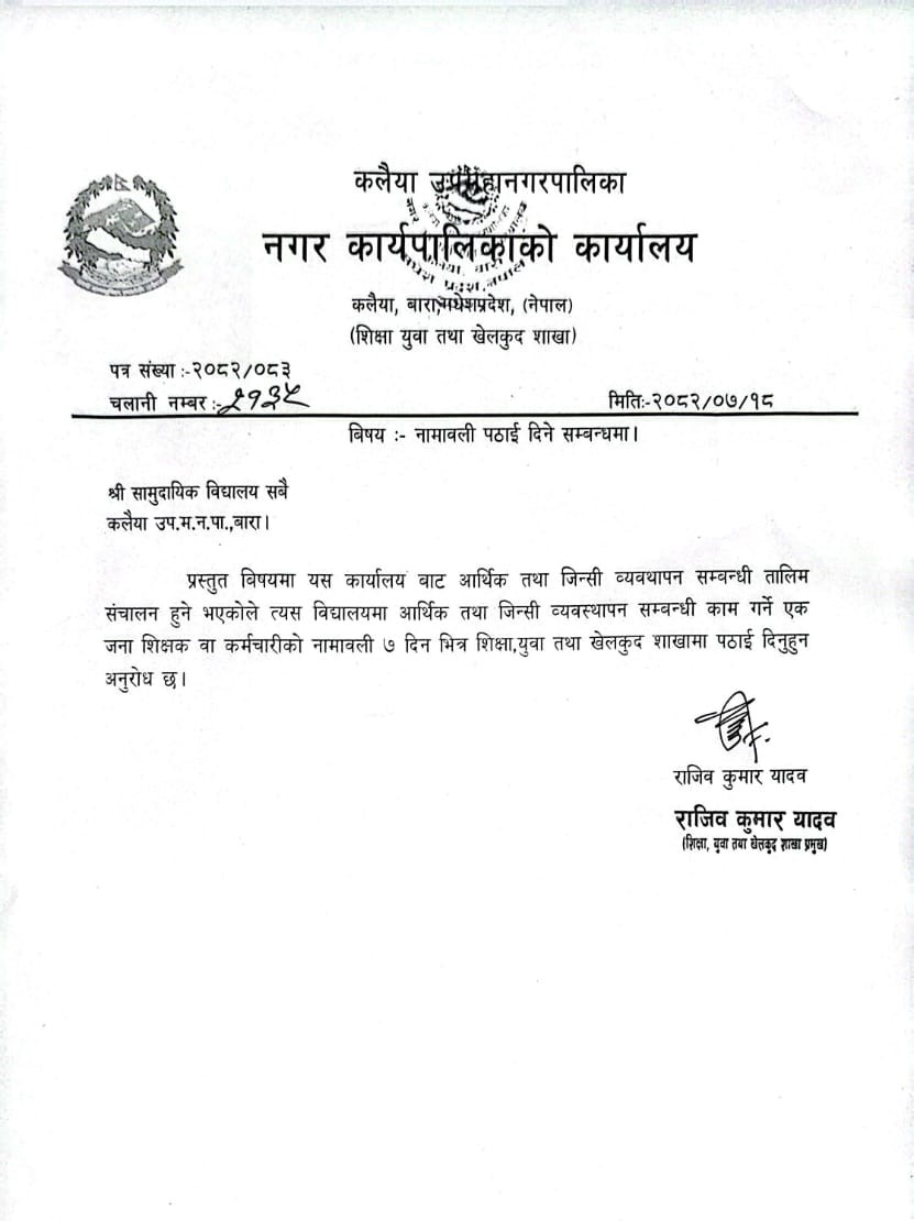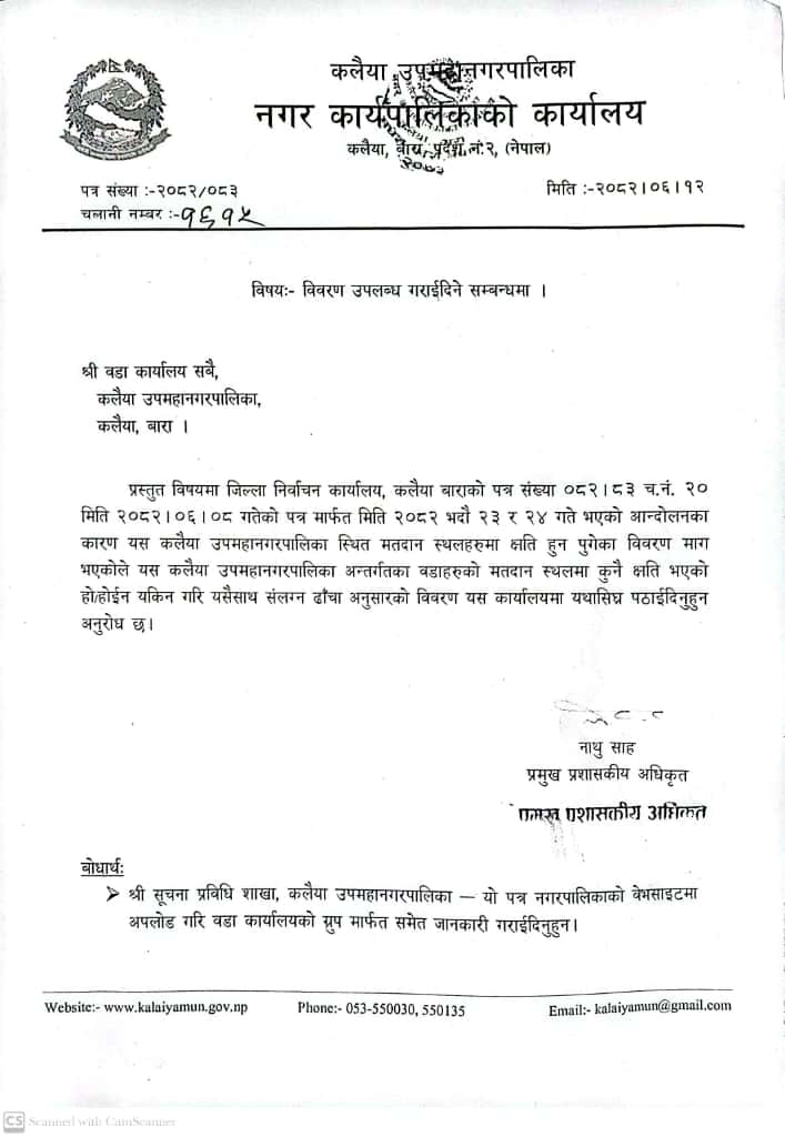 मितिः२०७५।०३।१० गते कलैया उप-महानगरपालिकाको दोश्रो नगरसभामा सहभागि हुन सादर अनुरोध छ।