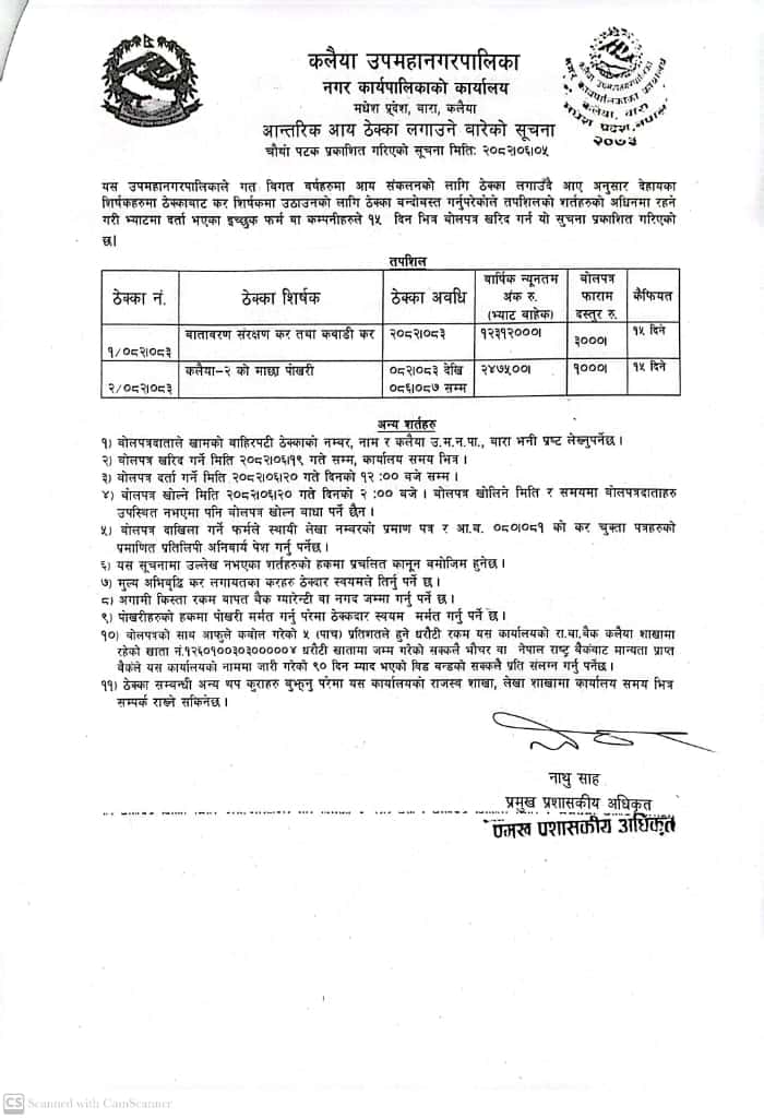 आन्तरिक आय ठेक्का लगाउने बारे सूचना-मितिः२०८२।०४।०८