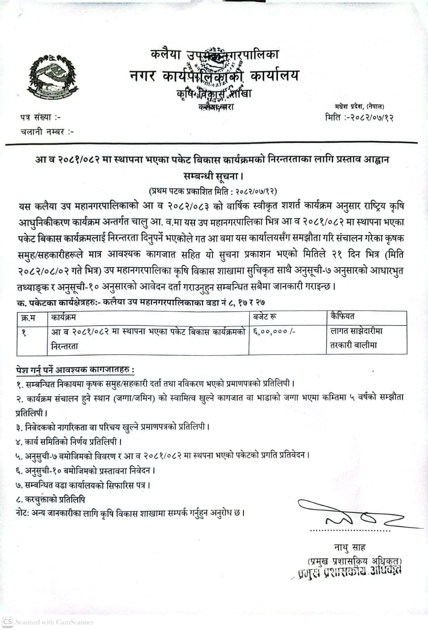आ.व. २०८१।०८२ मा स्थापना भएका पकेट विकास कार्यक्रम निरन्तरताका लागि प्रस्ताव आह्वान सम्बन्धी सूचना-मितिः२०८२।०७।१३