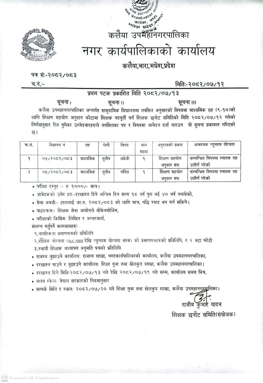 माध्यमिक तहमा शिक्षक पदपुर्ति सम्बन्धी सूचना-मितिः२०८२।०६।२१