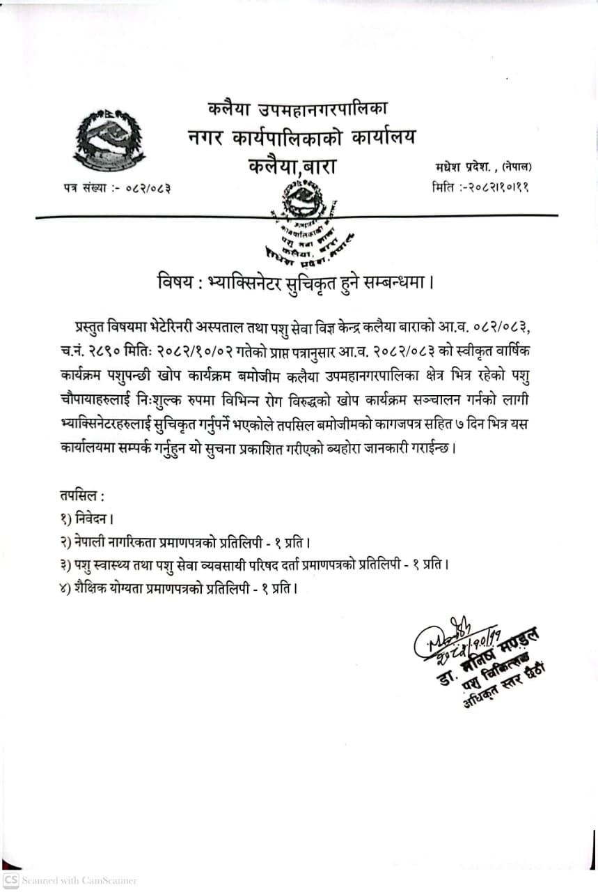 भ्याक्सिनेटर सूचिकृत हुने सम्बन्धी सूचना-मितिः२०८२।१०।११