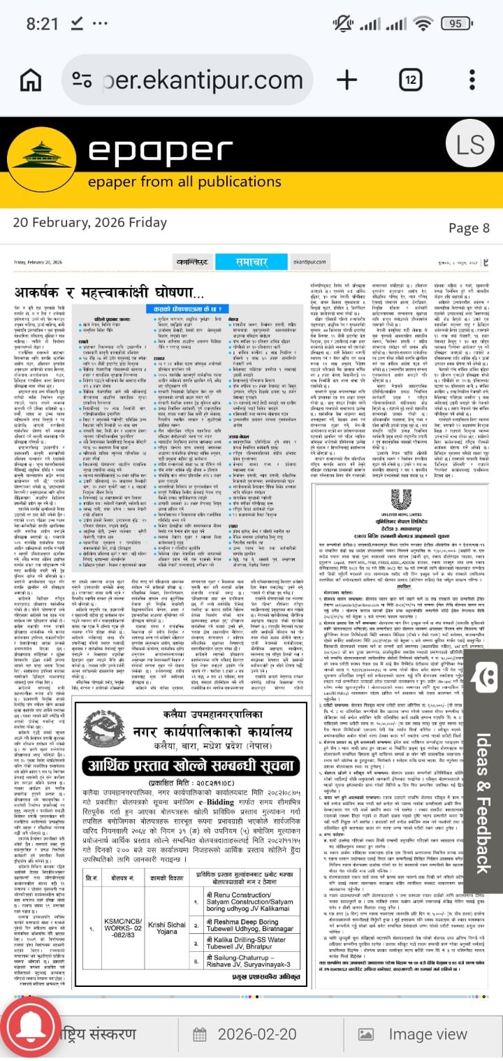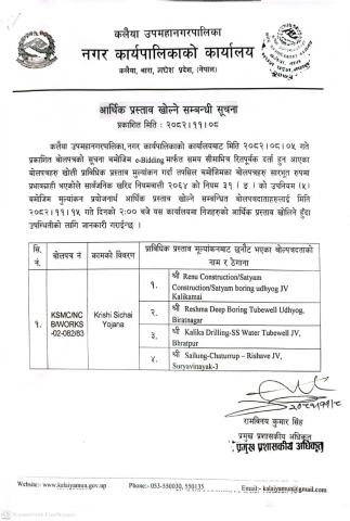 आर्थिक प्रस्ताव खोल्ने सम्बन्धी सूचना - प्रकाशित मिति : २०८२।११।०८