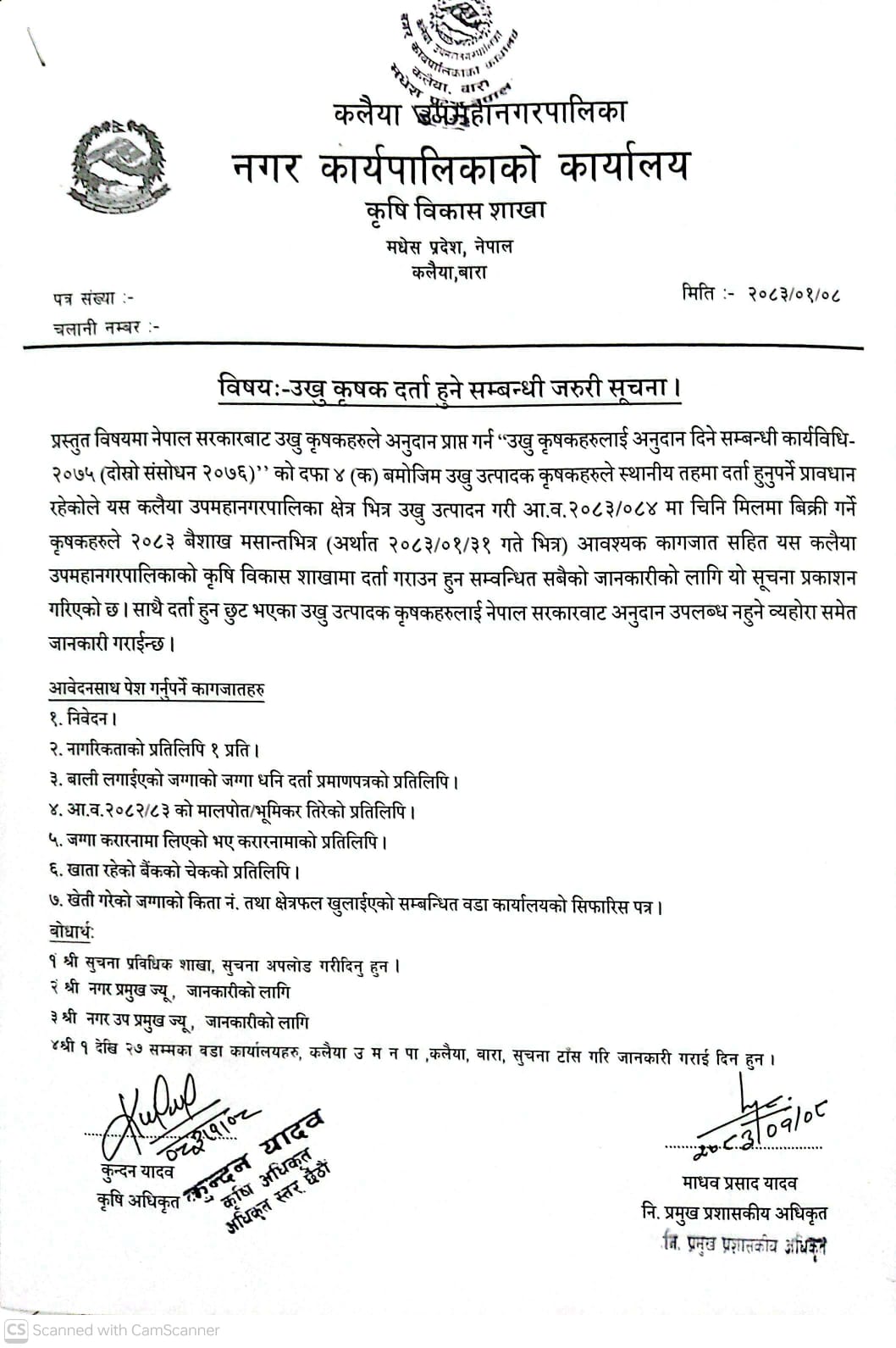 उखु कृषक दर्ता हुने सम्बन्धी जरुरी सूचना – मितिः२०८३।०१।०८