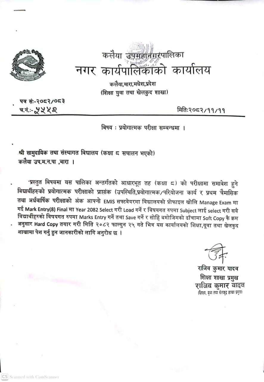 » प्रयोगात्मक परीक्षा सम्बन्धी सूचना-मितिः२०८२।११।११