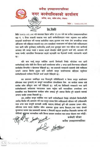 कलैया उपमहानगरपालिका अन्तरगत पर्ने मानवत मटिअर्वा सडक संगै बाटोमा पर्ने सबै संरचना हटाई सफा स्वच्छ कलैया बनाउन सबैमा सहयोगका लागि अपिल - मितिः२०७५।१०।०५