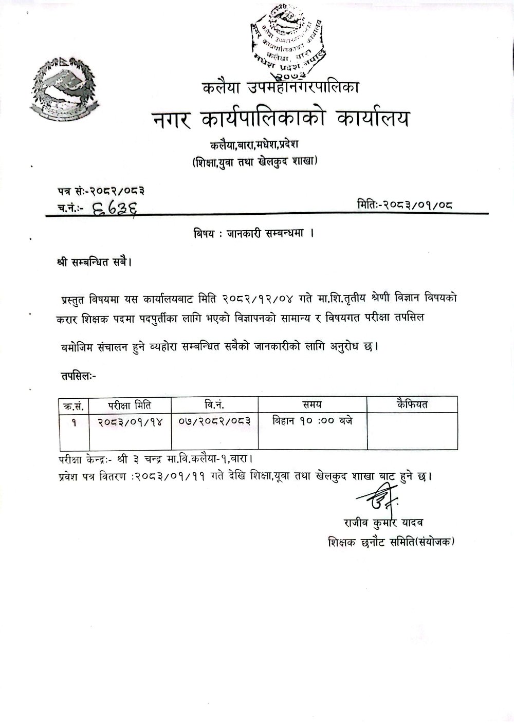 सामान्य तथा विषयगत परीक्षा संचालन समय तालिका सम्बन्धि सूचना-मितिः२०८३।०१।०८