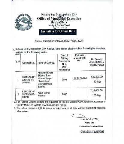 Notice of Invitation for BIDS Date of Publication: 2082/06/05