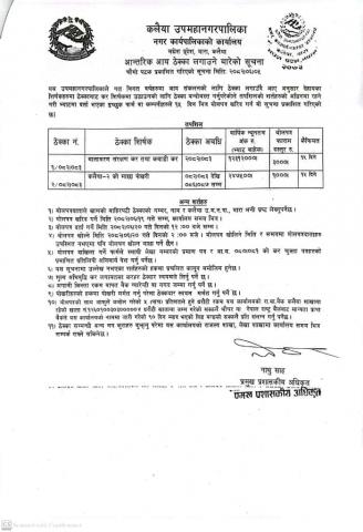 आन्तरिक आय ठेक्का लगाउने बारे चौथो पटक प्रकाशित सूचना-मितिः२०८२।०६।०५