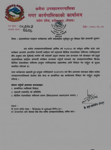 उद्यमशीलता प्रवद्र्धन कार्यक्रमका लागि लाभग्राहीमा सूचीकृत हुन निवेदन दिने सम्बन्धी सूचना-मिति:२०८३।०१।०७