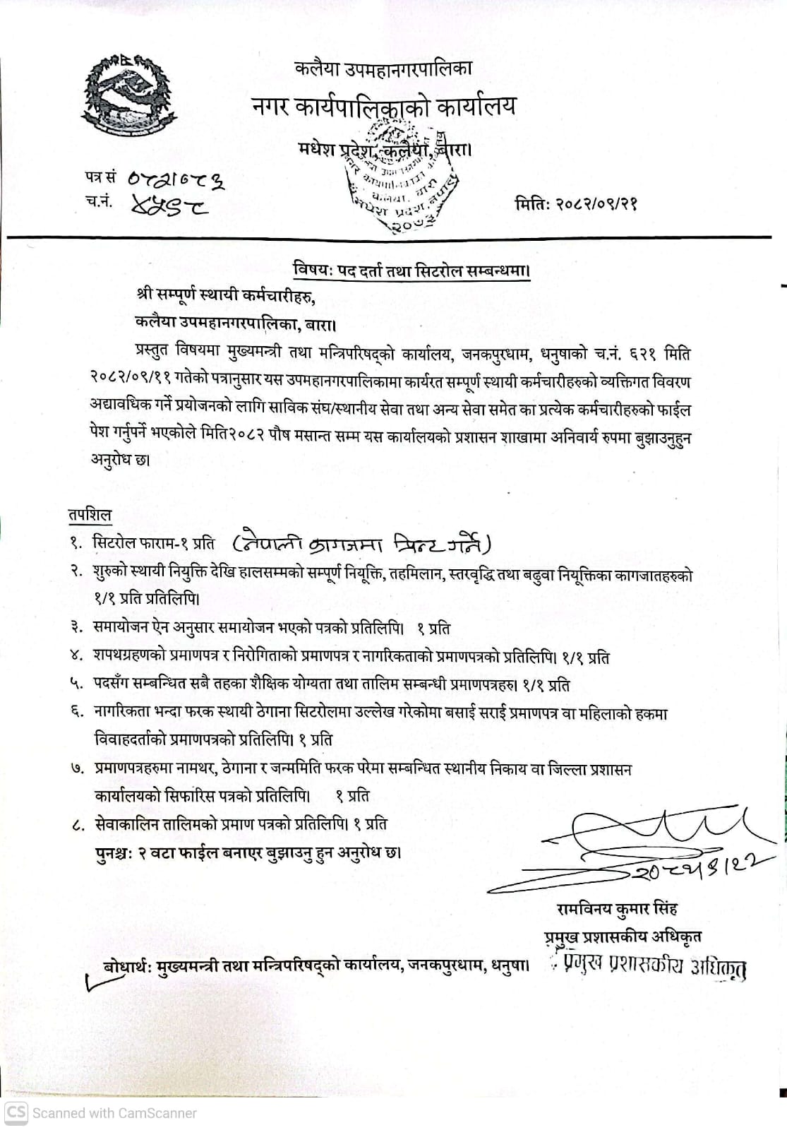 पद दर्ता तथा सिटरोल सम्बन्धी सूचना-मितिः२०८२।०९।२१