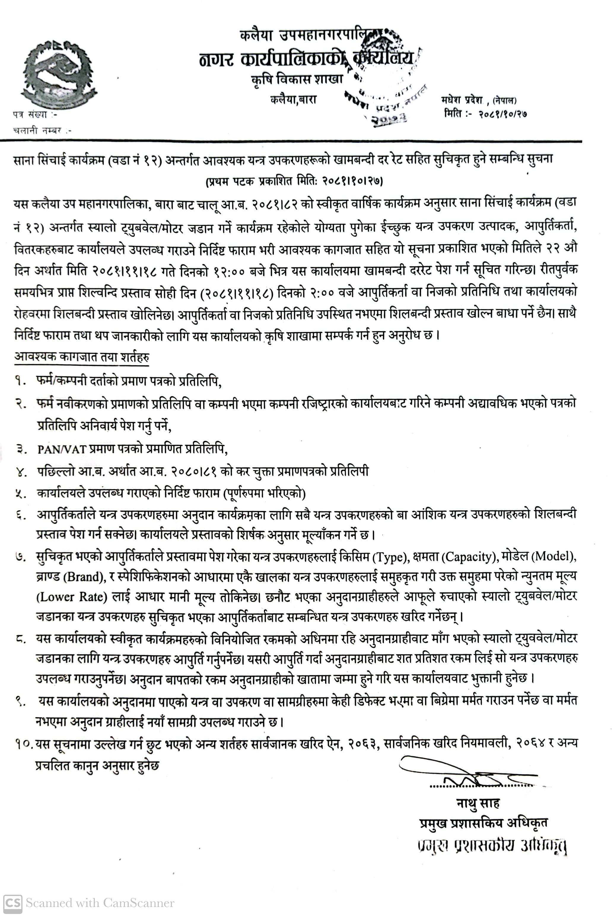 साना सिचाई कार्यक्रमको लागि प्रस्ताव अह्वान सम्बन्धी सूचना - मितिः२०८२।०६।२६