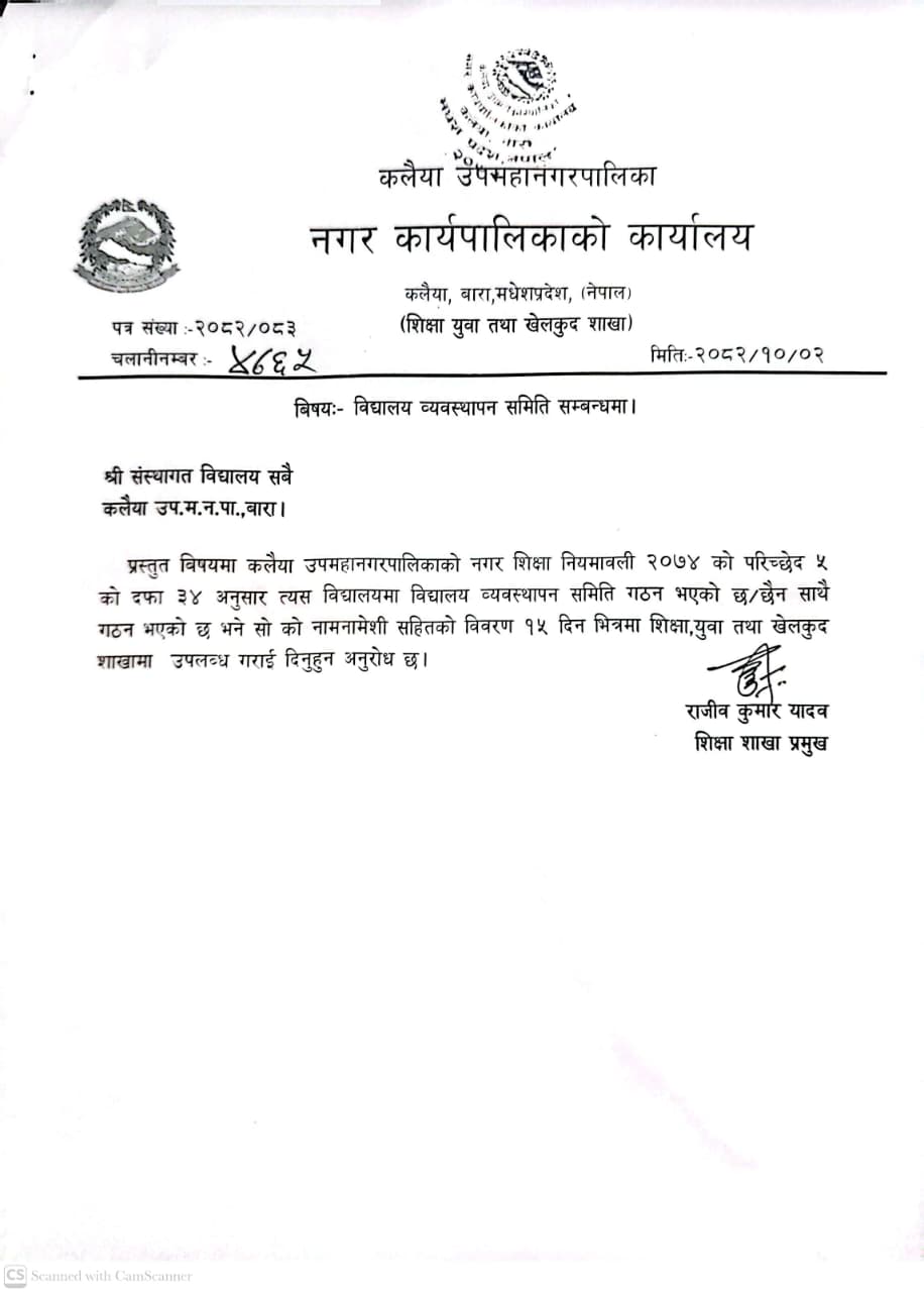 विद्यालय ब्यवस्थापन समिति गठन सम्बन्धी बिवरण उपलब्ध गराईदिने -मितिः२०८२।१०।०२