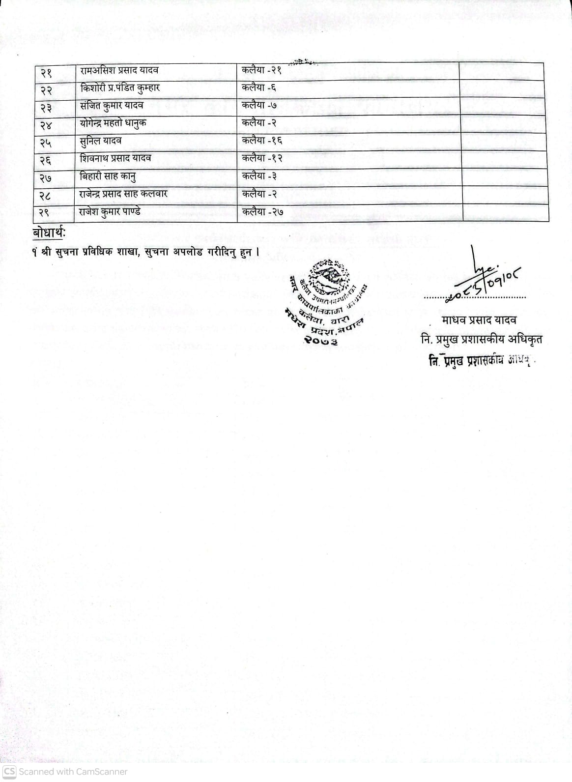 कलैया उपमहानगरपालिका अन्तरगत पर्ने मानवत मटिअर्वा सडक संगै बाटोमा पर्ने सबै संरचना हटाई सफा स्वच्छ कलैया बनाउन सबैमा सहयोगका लागि अपिल - मितिः२०७५।१०।०५