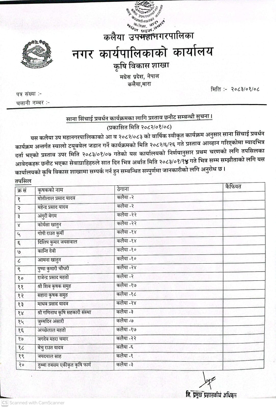 उखु कृषक दर्ता हुने सम्बन्धी जरुरी सूचना – मितिः२०८३।०१।०८