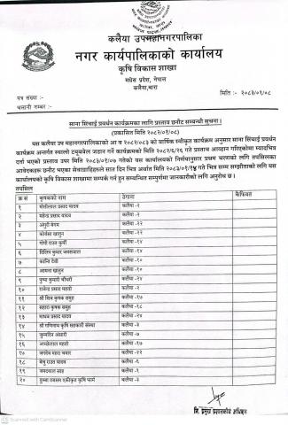 बोट बिरूवा सप्लाई सम्बन्धि सार्बजनिक सूचना मितिः २०७५।०३।०५