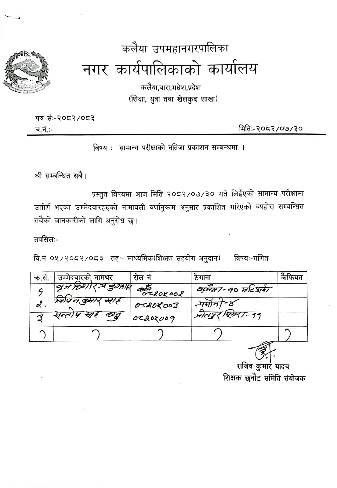 सामान्य परीक्षाको नतीजा प्रकाशन सम्बन्धी सूचना-मितिः२०८२।०७।३०