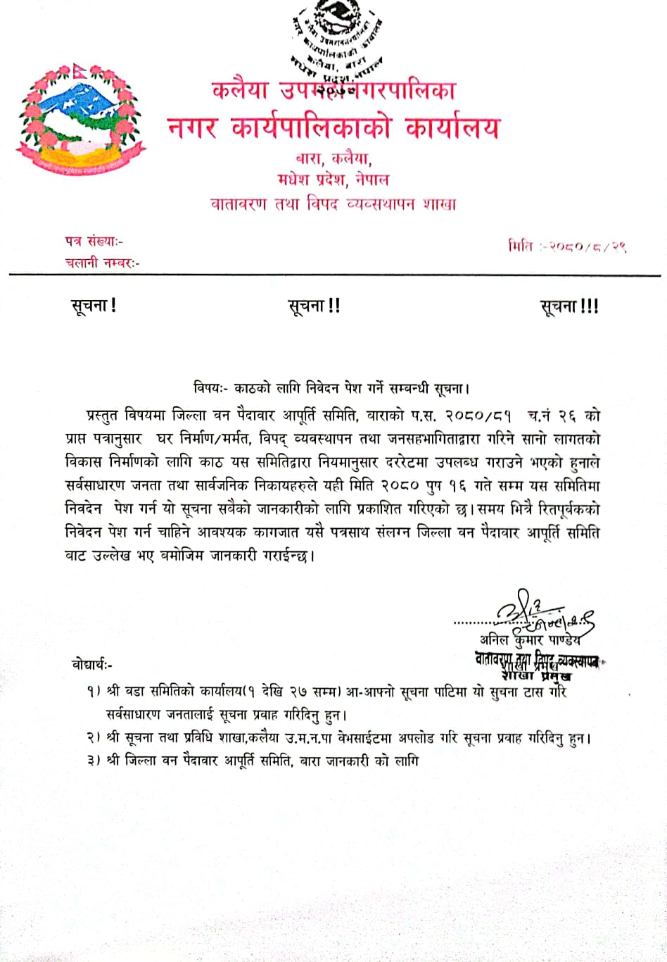 » काठको लागि निवेदन पेश गर्ने सम्बन्धी सूचना-मितिः२०८०।०८।२९