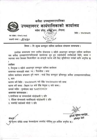 नि:शुल्क कम्प्युटर तालिम संचालन सम्बन्धी सूचना-मितिः२०८२।०८।१०