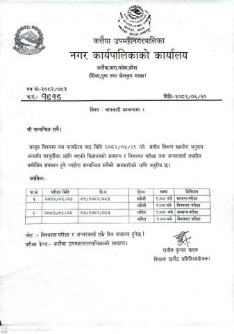 परीक्षा संचालन सम्बन्धी सूचना-मितिः२०८२।०७।२३
