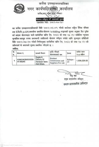 » बोलपत्र स्वीकृत गर्ने आशयको सूचना-मितिः२०८२।०७।२४