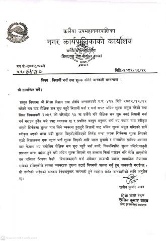 विद्यार्थी भर्ना तथा शुल्क नलिने जानकारीको लागि सूचना-मितिः२०८२।१२।२५