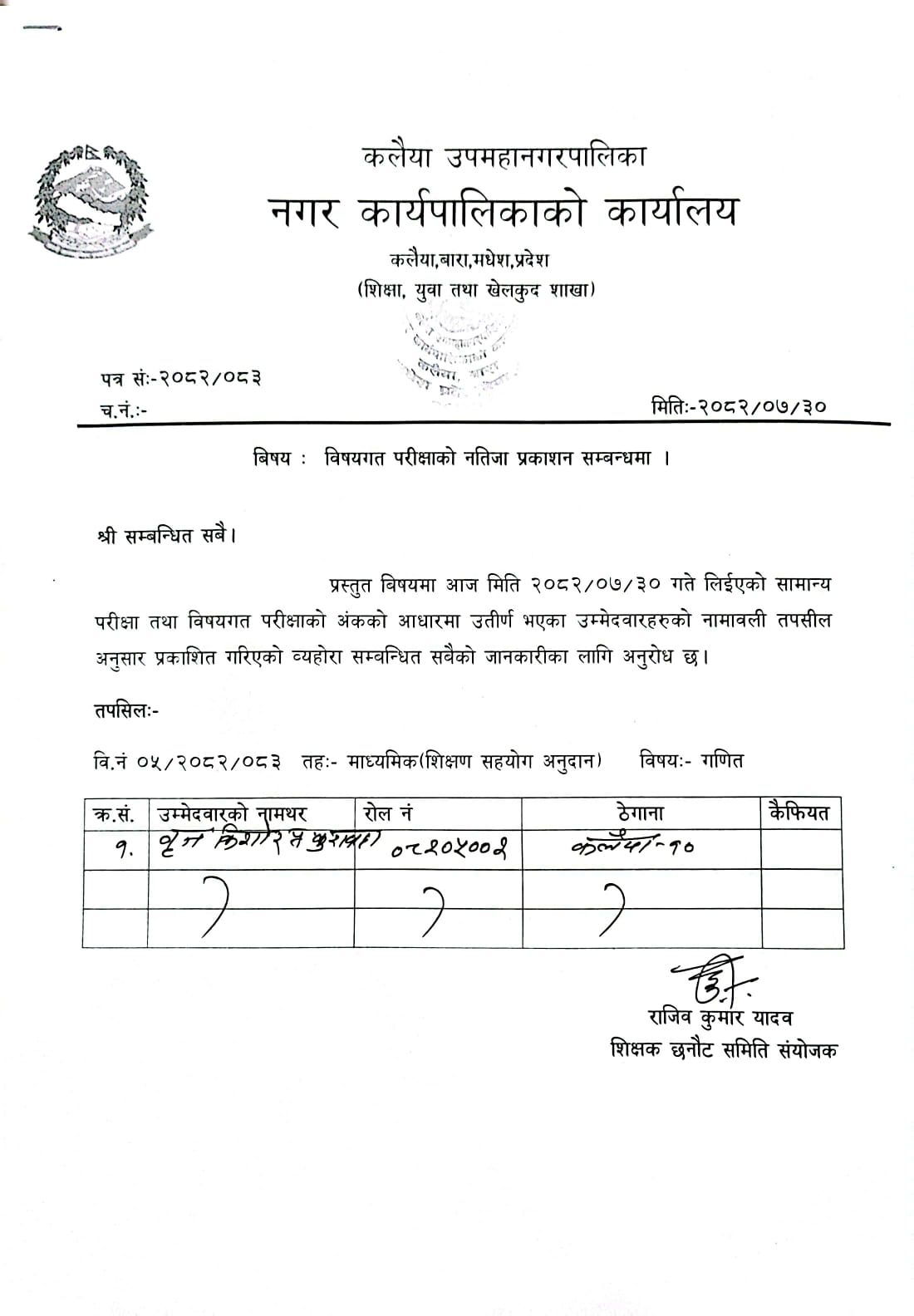 » विषयगत परीक्षाको नतीजा प्रकाशन सम्बन्धी सूचना-मितिः२०८२।०७।३०