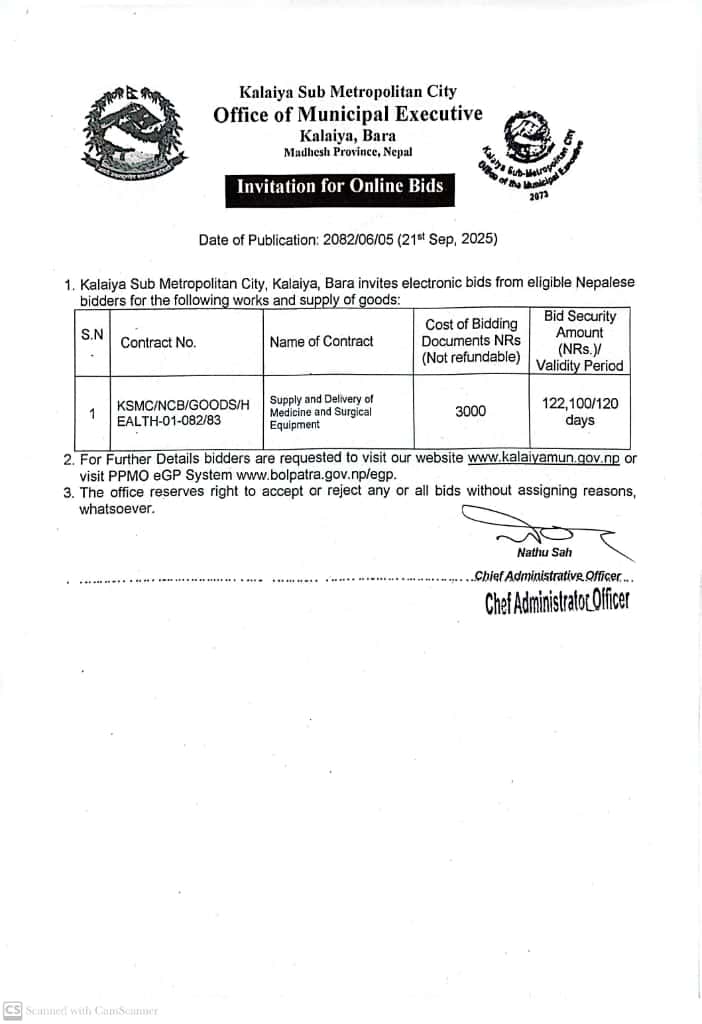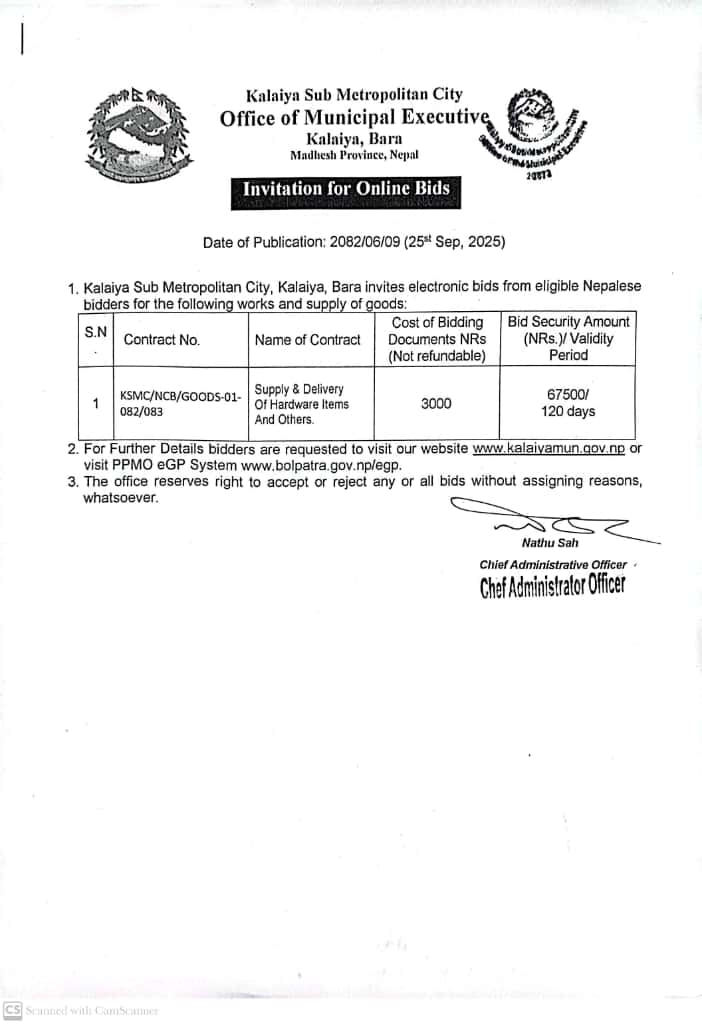 Notice of Invitation for BIDS Date of Publication: 2082/06/09